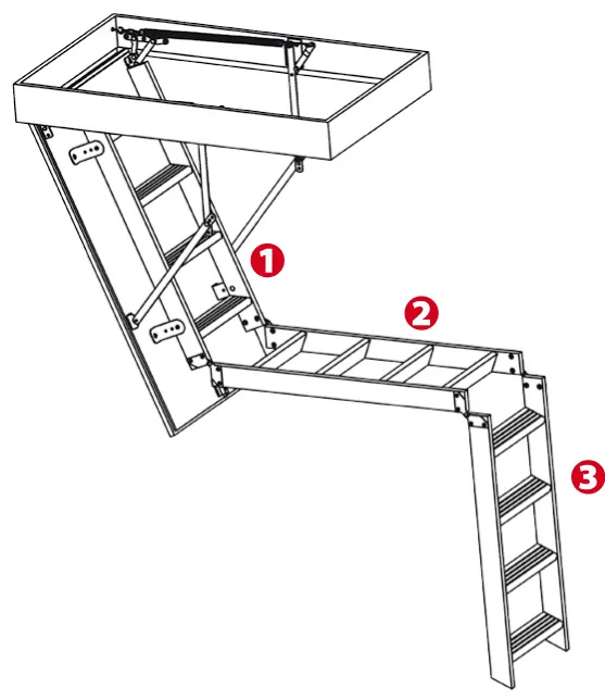 Складная 3-х секционная чердачная лестница. Рабочая поверхность полностью выполнена из алюминия. Термоизоляционная крышка типа "сэндвич" имеет усиленную теплозащиту, облицована с двух сторон ДВП белого цвета.
