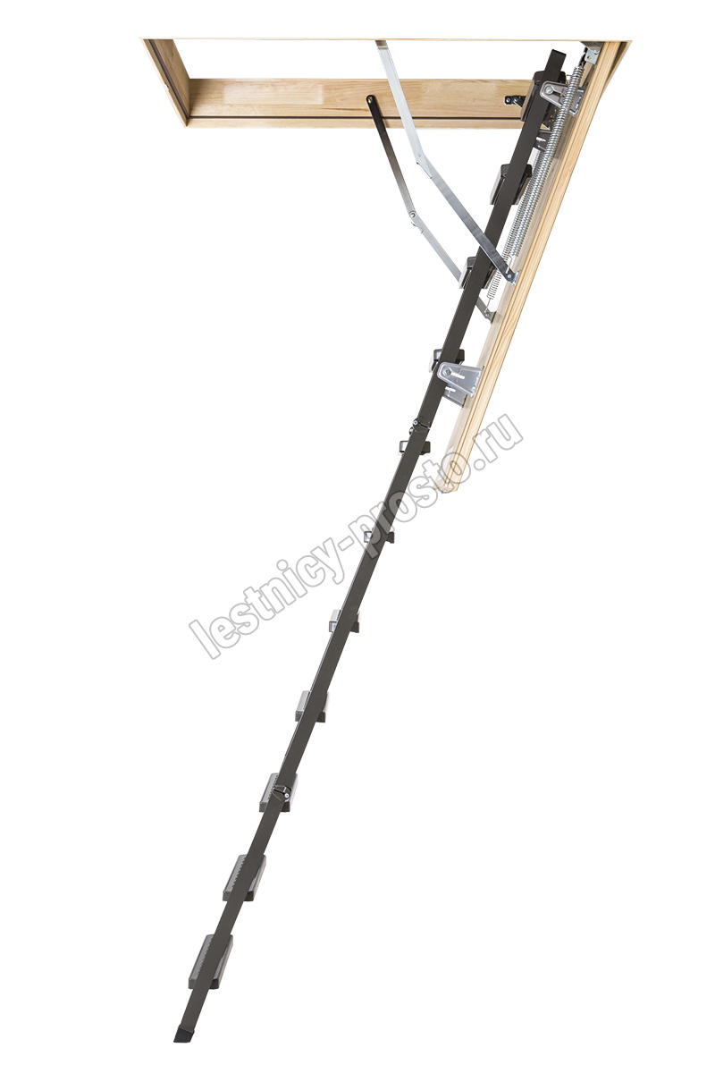 Чердачная металлическая лестница LMS – это надежная складная конструкция, состоящая из марша и термоизоляционной крышки, изготовленной из ДВП и окрашенной в бежевый цвет. Герметичность всей конструкции достигается благодаря утеплению крышки люка и контурному уплотнению по периметру, что предотвращает возможные теплопотери. Чердачную лестницу очень легко разложить и сложить благодаря наличию специального стержня с четырехугольной насадкой. Установленные в лестнице угловые петли-шарниры нового образца придают ей высокую прочность и надежность, а также предохраняют короб от возможной деформации. Основное преимущество чердачной складной металлической лестницы LMS сводится к ее небольшим габаритам при сохранении высокой функциональности, прочности, надежности и эстетичности конструкции. Монтировать лестницу очень просто, для этого не придется затрачивать много времени и сил. Применение лестничной конструкции этого типа позволяет существенно экономить пространство. Монтажный комплект LXK в комплекте не поставляется.