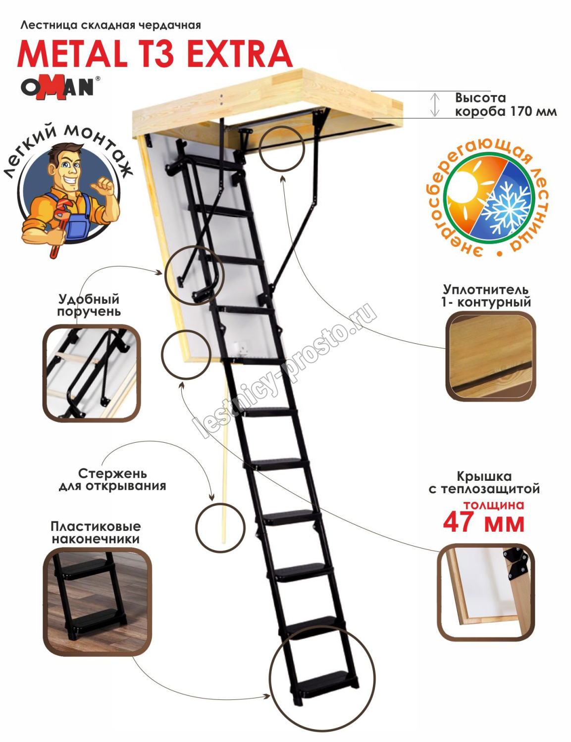 Лестница OMAN Metal T3 EXTRA 70×130 см, h-280 см