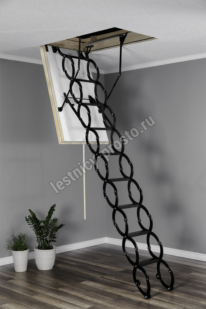Модель лестницы, благодаря использованию цельнометаллической ножничной конструкции, идеально подходит для установки в помещениях высотой до 290 см. Выбор лестницы NOZYCOWE TERMO SUPER - это инвестиция, которая позволяет минимизировать потери теплого воздуха и значительно снизить расходы на отопление.