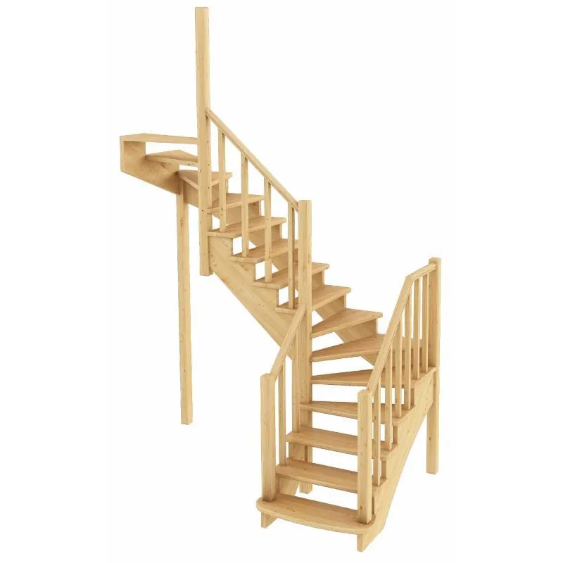 Базовый комплект включает в себя деревянные элементы лестницы и ограждения без какого-либо покрытия.