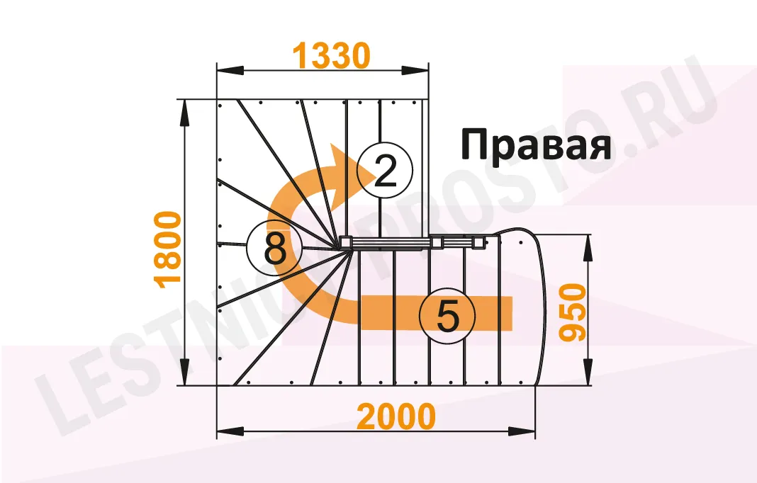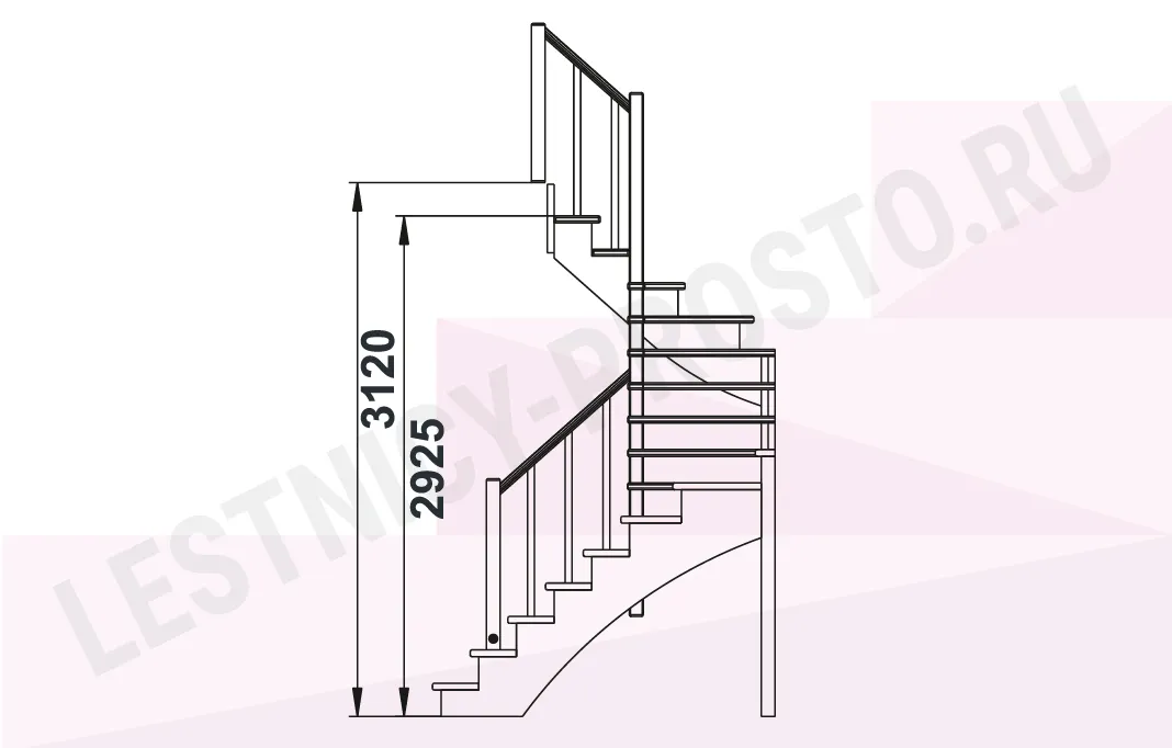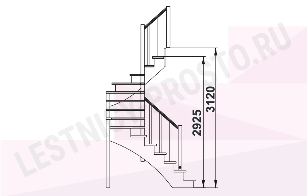 Ступени и поручень изготовлены из дуба, остальные элементы лестницы из сосны.