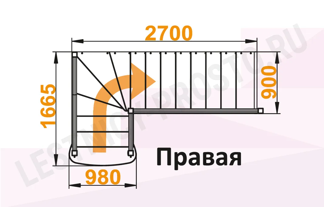 Схема лестницы К-021М с поворотом направо
