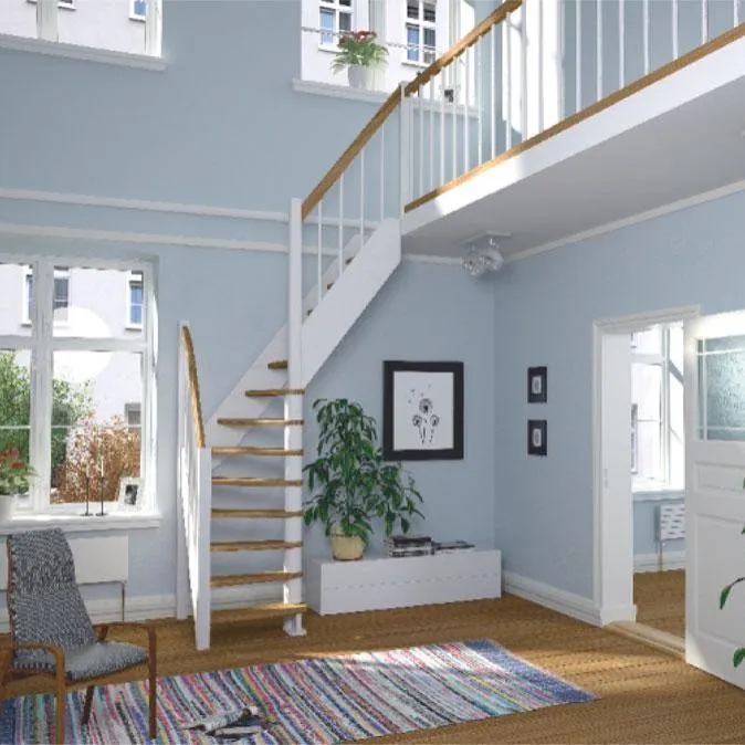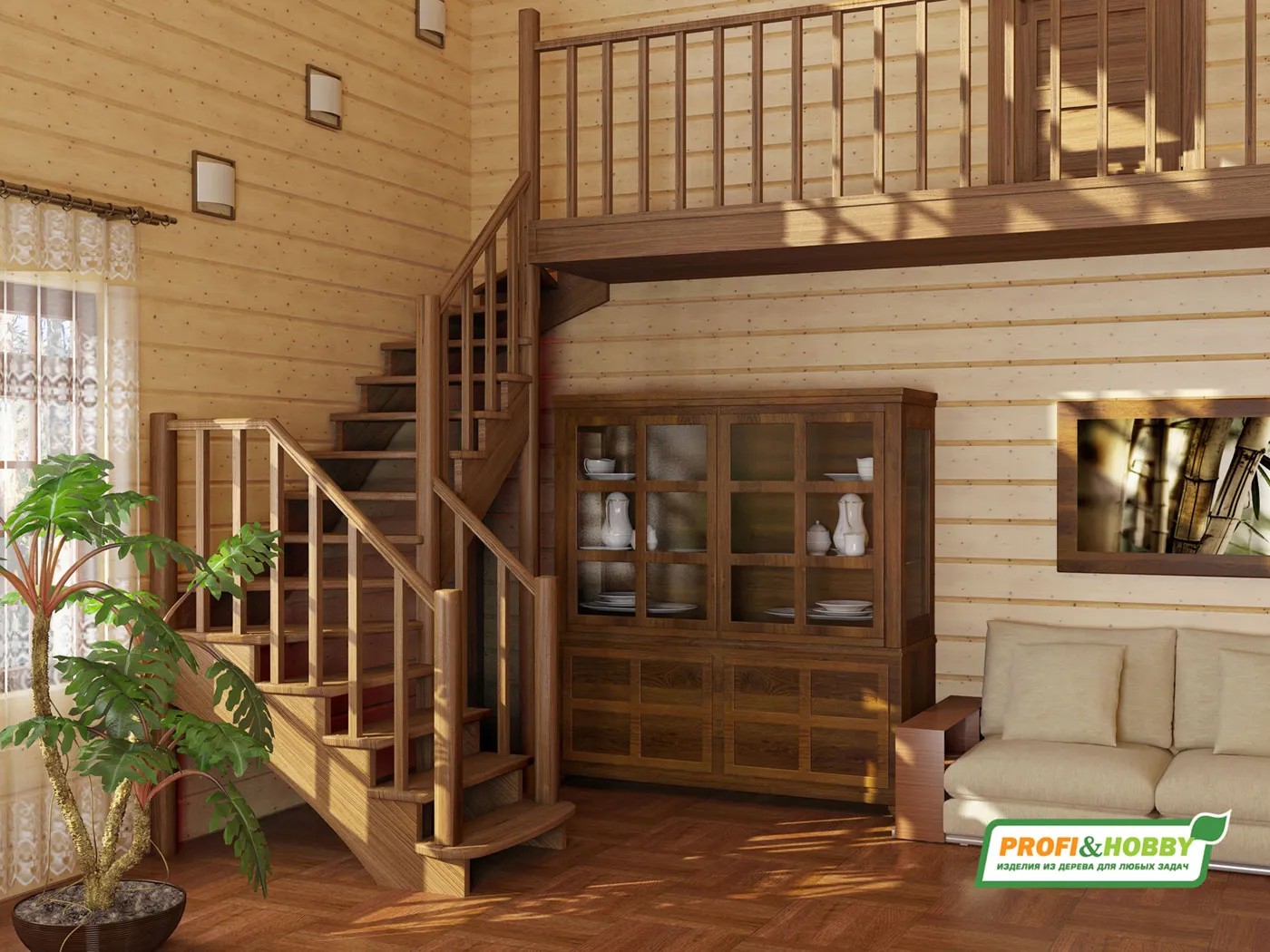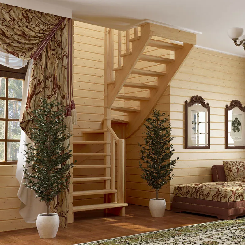 Ступени и поручень лестницы изготовлены из дуба, остальные элементы из сосны.