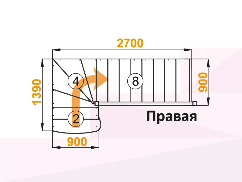 Удобная и современная модель с забежными ступенями будет отличным решением для помещений, где необходимо сэкономить свободное пространство. Сдержанный классический дизайн великолепно впишется в интерьер любого стиля и создаст уютную домашнюю атмосферу. Лестница имеет поворот на 90 градусов и выпускается в 4 различных вариантах, что существенно упрощает ее подбор.