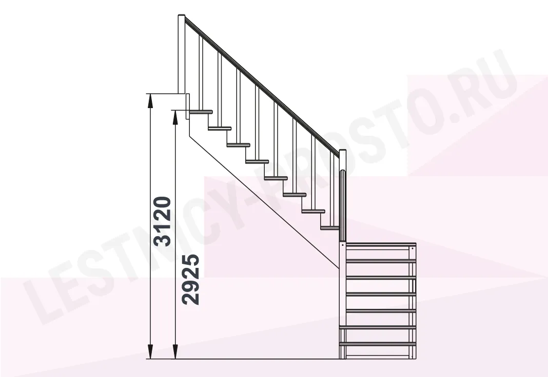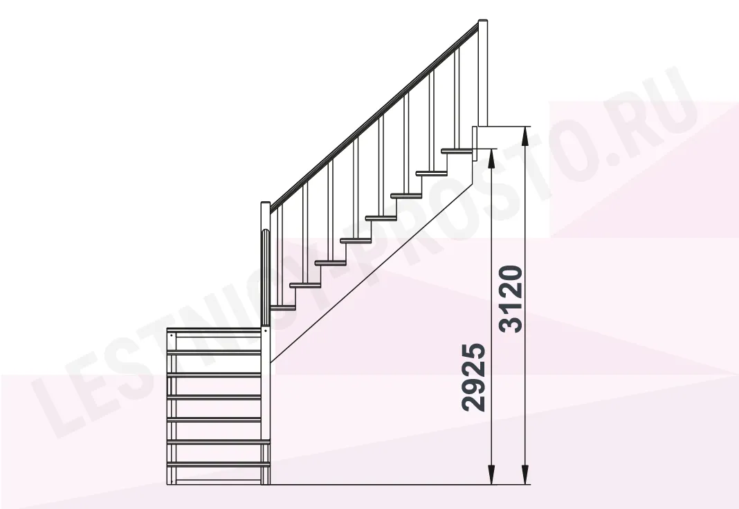 Высота лестницы 2925 - 3120 мм
