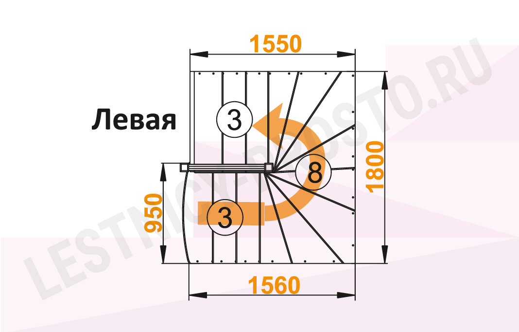 Схема лестницы К-003М/2 с поворотом налево