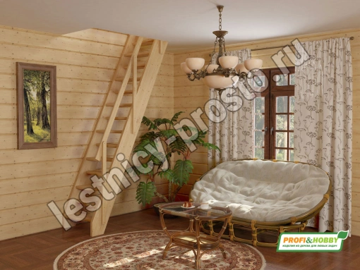 Базовый комплект включает в себя деревянные элементы лестницы и ограждения без какого-либо покрытия.