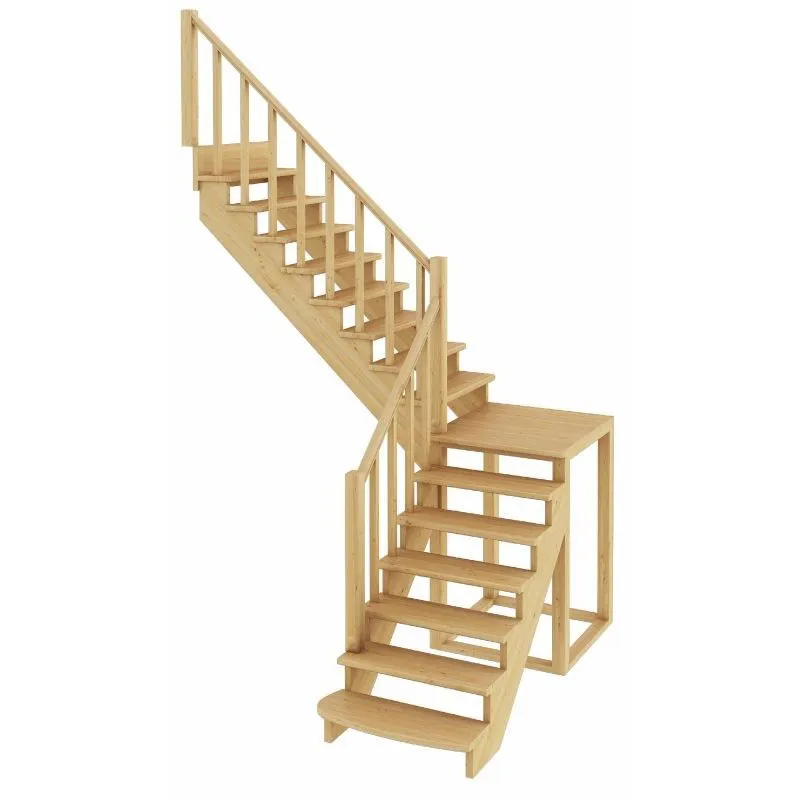 Лестница поставляется в разобранном виде, упакованной в два ящика. Базовый комплект включает в себя деревянные элементы лестницы, подступенки и ограждения без какого-либо покрытия.