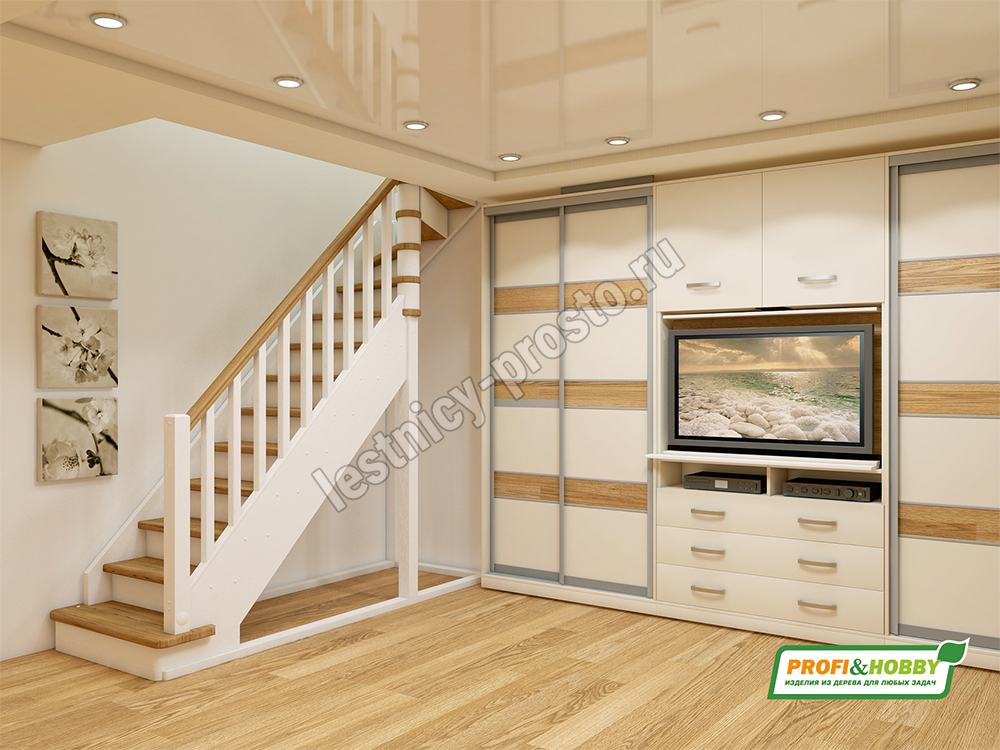 В производстве лестницы ЛС-215м под покраску используется сосна с небольшими изменениями цвета, что практически не влияет на ее механические свойства и почти незаметно при покраске в темные цвета. Базовый комплект включает в себя деревянные элементы лестницы с подступенками и ограждения без какого-либо покрытия.