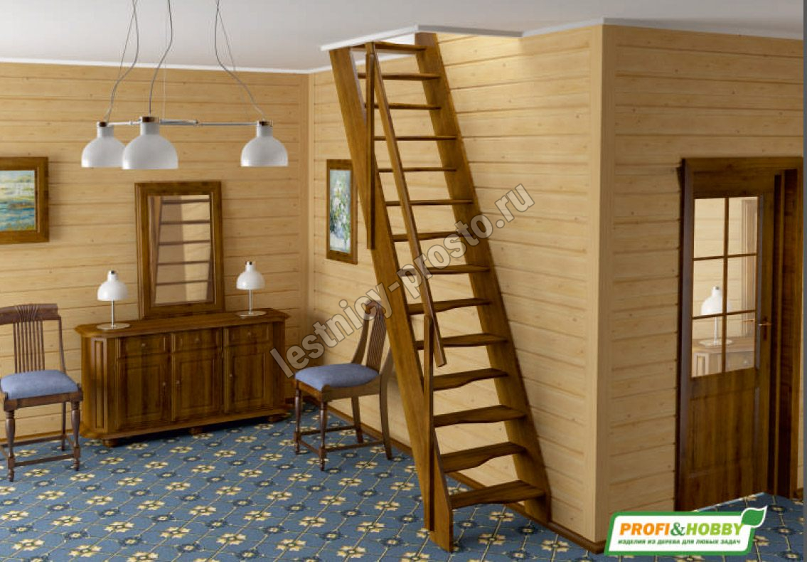 Ступени и поручень лестницы изготовлены из ясеня, остальные элементы из сосны.