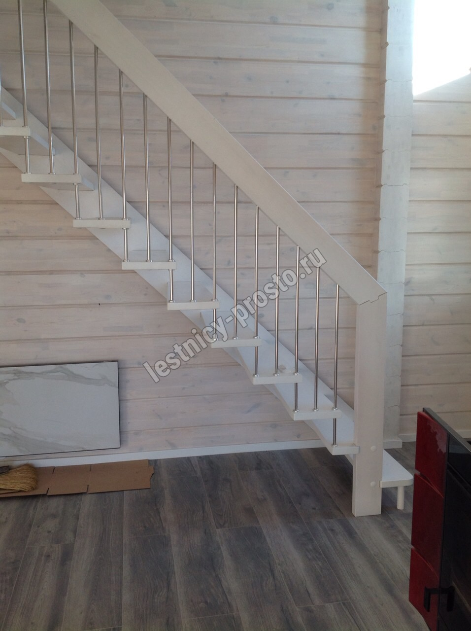 Надёжная современная лестница выполнена по немецкой технологии. Стоимость указана для лестницы с ограждением (с одной стороны); Поставляется в разобранном виде, в комплекте необходимый крепёж; Лестницу можно собрать самостоятельно; Так же, вы можете заказать услугу монтажа нашими специалистами; 4 вида породы дерева для изготовления лестницы: сосна, бук, ясень, дуб; возможна комбинированная лестница: из сосны (ступени бук, ясень, дуб); Деревянные элементы без какого-либо покрытия, отшлифованы, готовы к покраске. За дополнительную плату, вы можете изменить любые параметры, а именно: увеличить глубину ступени; увеличить ширину марша до 900 мм. и выше; заказать подступенки к лестнице; заказать отделку перекрытия (между 1-м и 2-м этажами); изготовить дополнительный промежуточный марш; заказать ограждение 2-го этажа; покраска в любой цвет или несколько цветов или покрытие защитными средствами; дополнение балясины из нержавеющей стали деревянными элементами; покраска балясин из нержавеющей стали порошковой краской в цвет RAL.