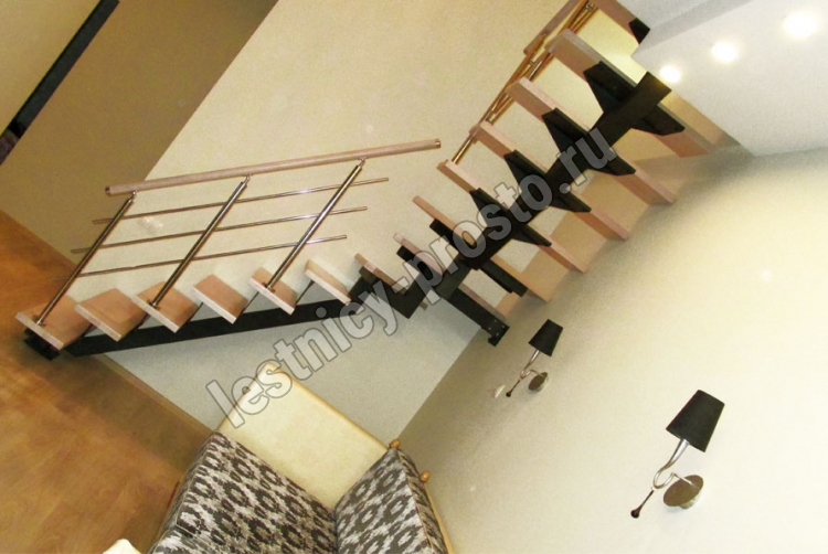 Комплект ограждений для П-образной лестницы PROSTO MONO из 13 ступеней.