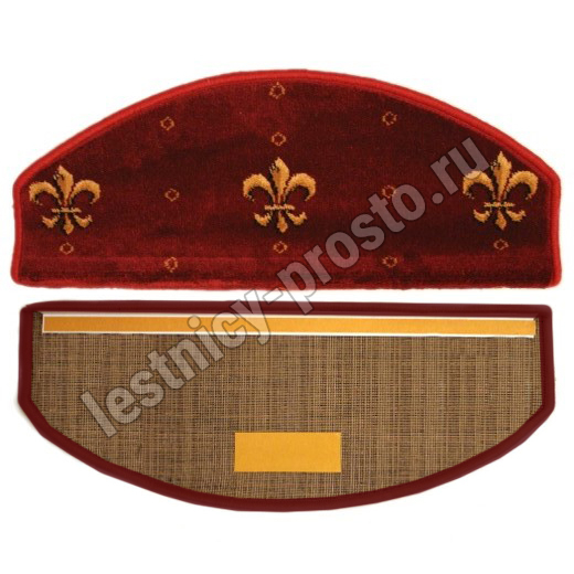 Ковровые накладки защищают ступени лестницы от изнашивания и служат безопасности, обеспечивая нескользящую поверхность. Края изделия окантованы. Внутренняя сторона ковровой ступени имеет специальные липкие накладки, для фиксации на ступеня лестницы.