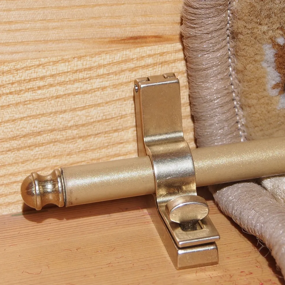 Ковродержатель комплектуется двумя держателями из алюминия цвета золото, а также алюминиевой трубкой цвета золото, длиной до 100 см.