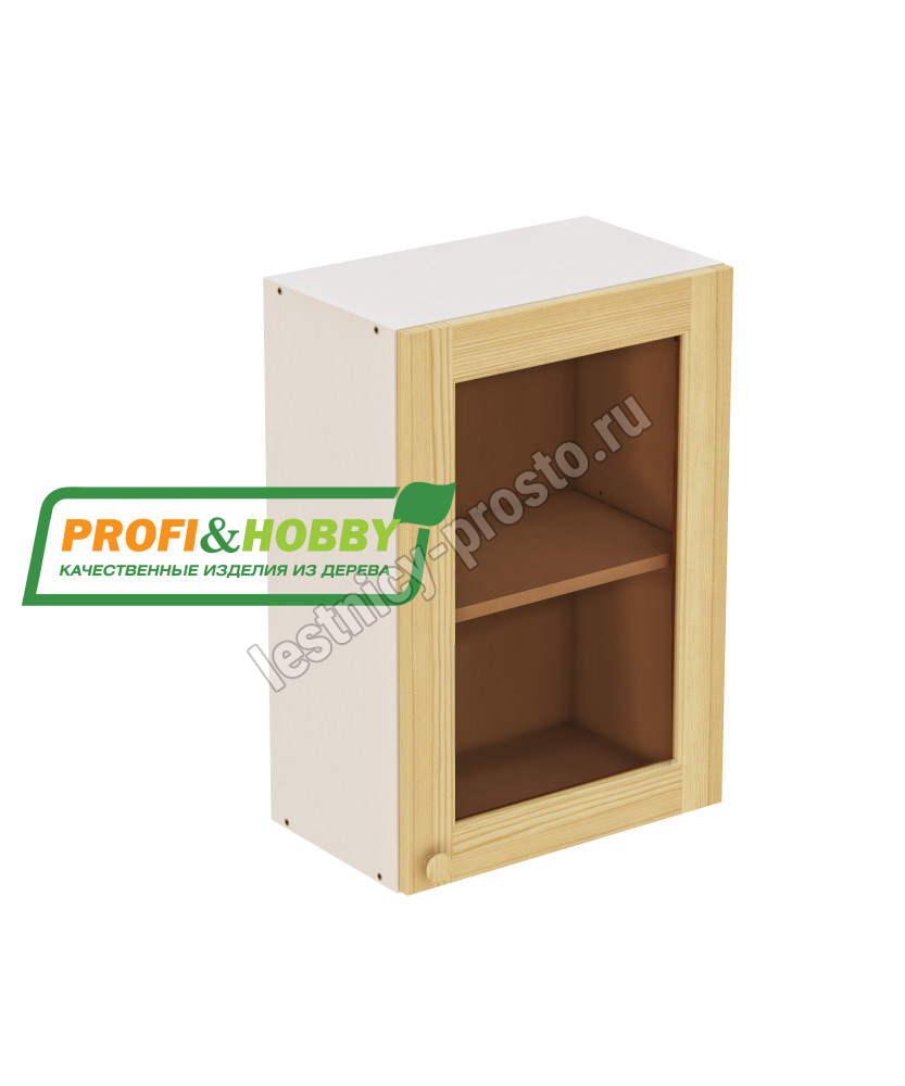 Шкаф навесной 500х340х720 + фасад сосна под стекло бесцветный акриловый лак