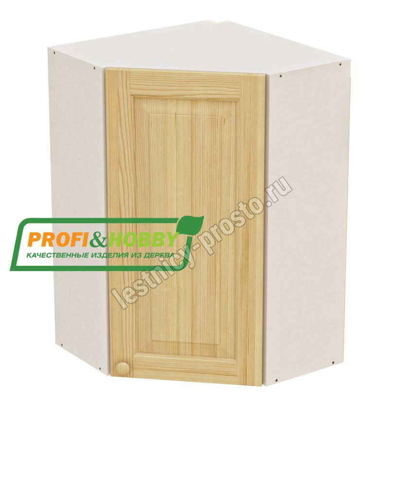 Шкаф навесной угловой 610х610х960 + фасад сосна бесцветный акриловый лак