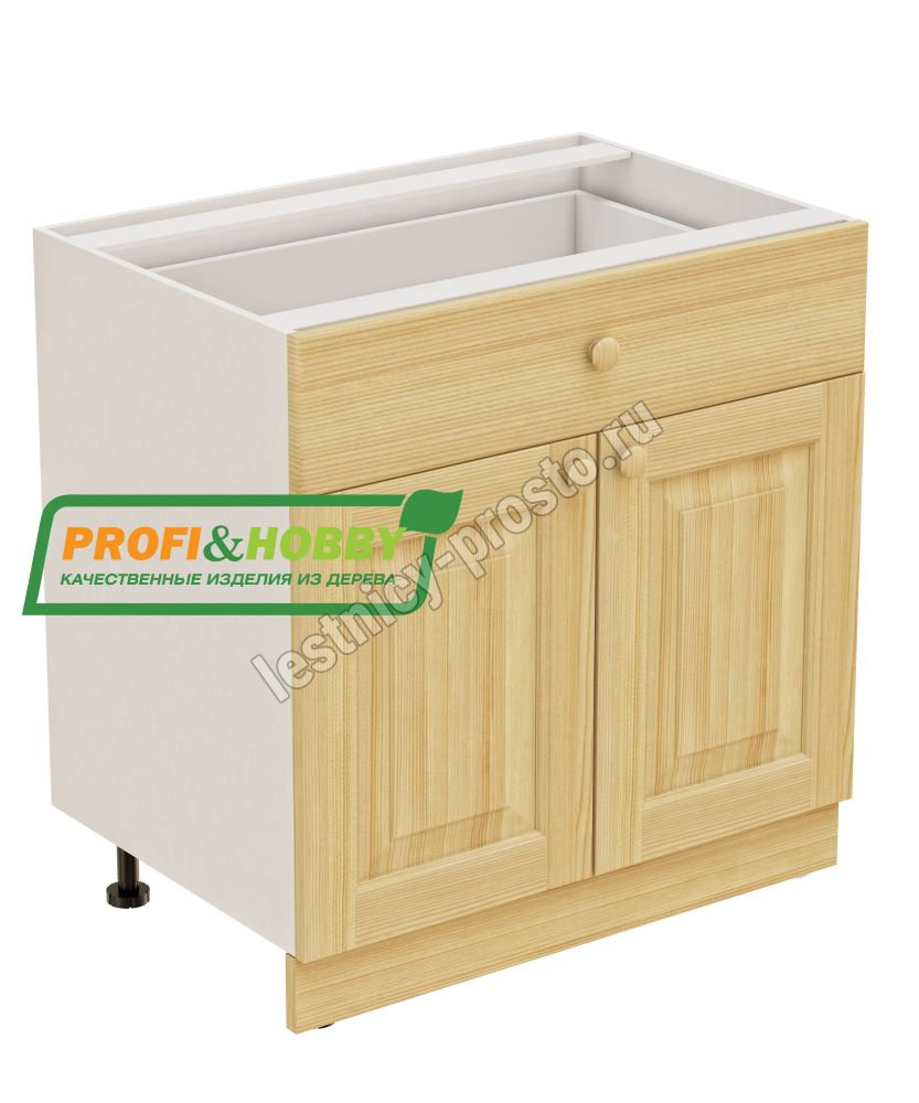Тумба 2 двери 1 ящик 800х530х720 + фасад сосна бесцветный акриловый лак