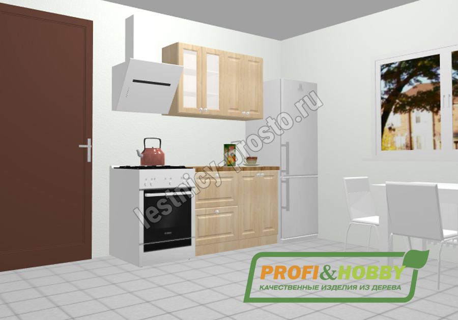 Кухня 1.2 х 2.14 м, массив сосны, бесцветный акриловый лак