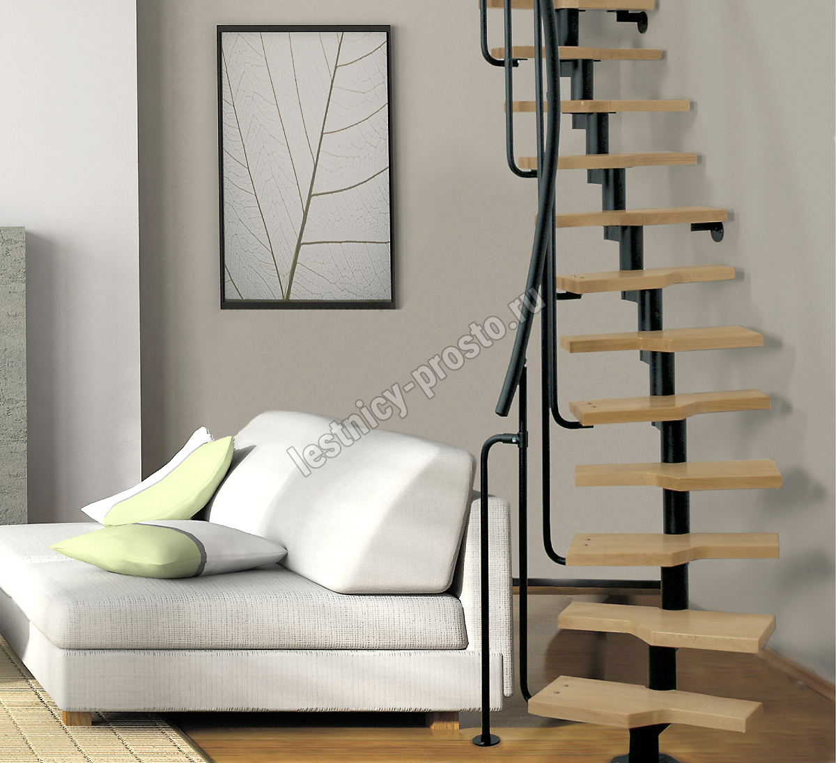 При монтаже этой лестницы, возможно регулировать высоту и глубину шага, таким образом можно получить лестницу под высоты этажа в диапазоне 2220 - 3000 мм. Ступени лестницы выполнены из сращенной ольхи и покрыты бесцветным защитным лаком. С помощью дополнительных секций (ступень + стальной модуль + фрагмент ограждения) можно увеличить высоту базовой модели до 3750 мм. Модульная конструкция лестницы позволяет собрать форму, которая наилучшим образом подходит под параметры вашего помещения. Возможны варианты прямой сборки, L-форма, U-форма.
