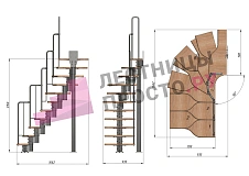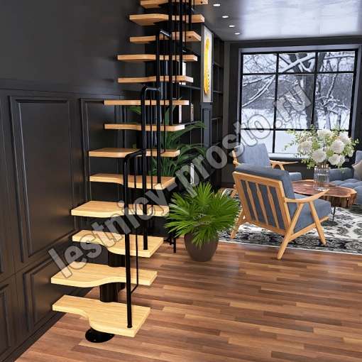 Лестница Prosto Urban Black гусиный шаг 700 мм, h198-288 см (11 ступеней), ясень