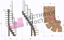 | Лестница Prosto Urban Black гусиный шаг 700 мм, h216-312 см (12 ступеней), бук |