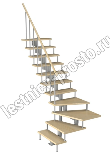 Модульная лестница Фаворит 225 2475-2585, Серый, Сосна, Нержавеющая сталь