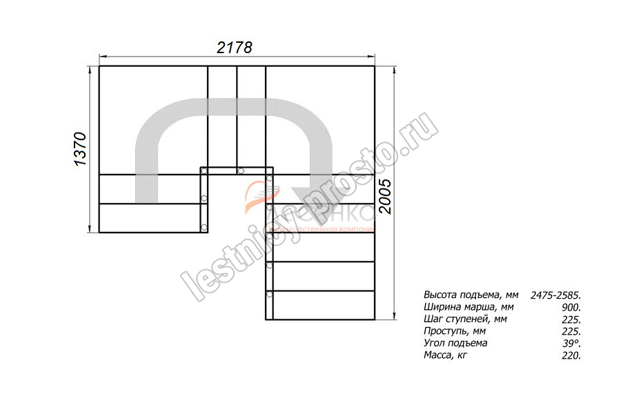 Модульная лестница Комфорт 225 2475-2585, Черный, Бук, Нержавеющая сталь