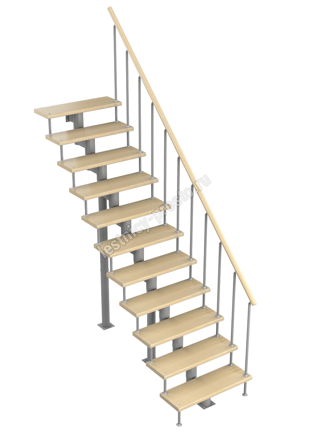 Модульная лестница Стандарт 2475-2585, Белый, Бук, Нержавеющая сталь