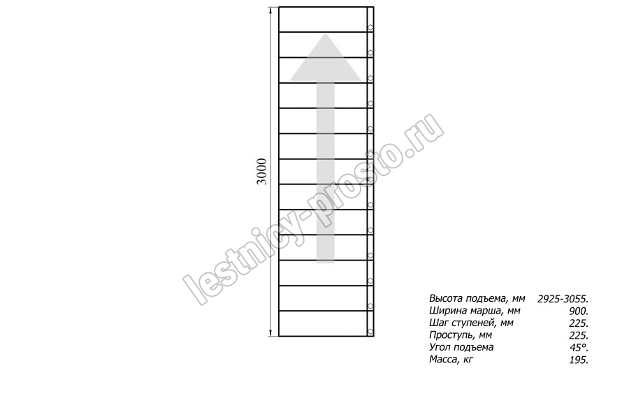 Модульная лестница Стандарт 2925-3055, Серый, Сосна, Крашеная, Без Ступений