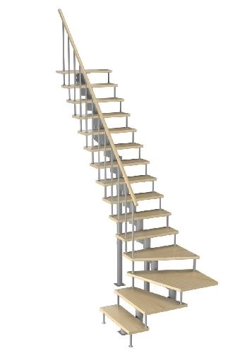 Модульная малогабаритная лестница Эксклюзив 2700-2925, Серый, Сосна, Крашеная, Без Ступений