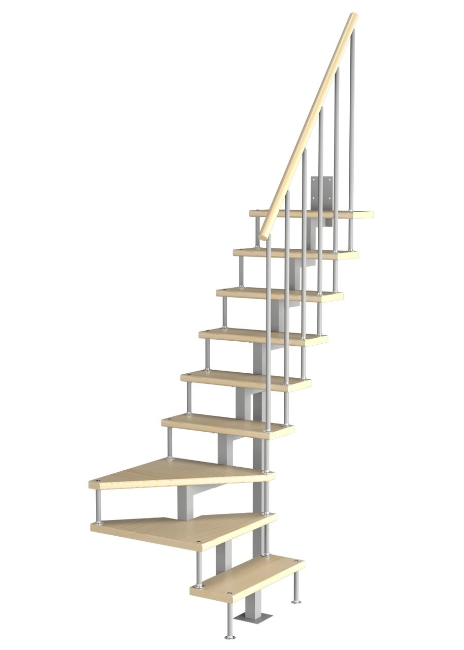 Модульная малогабаритная лестница Компакт 2025-2250, Серый, Лиственница, Нержавеющая сталь