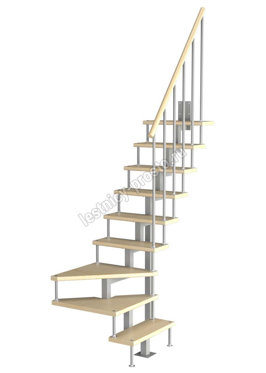 Модульная малогабаритная лестница Компакт 2025-2250, Серый, Сосна, Крашеная, Без Ступений