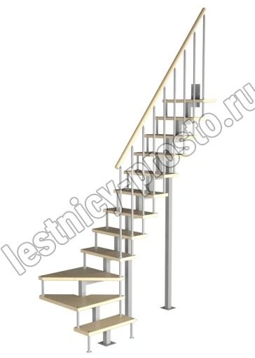Модульная малогабаритная лестница Компакт 2700-2925, Серый, Лиственница, Нержавеющая сталь