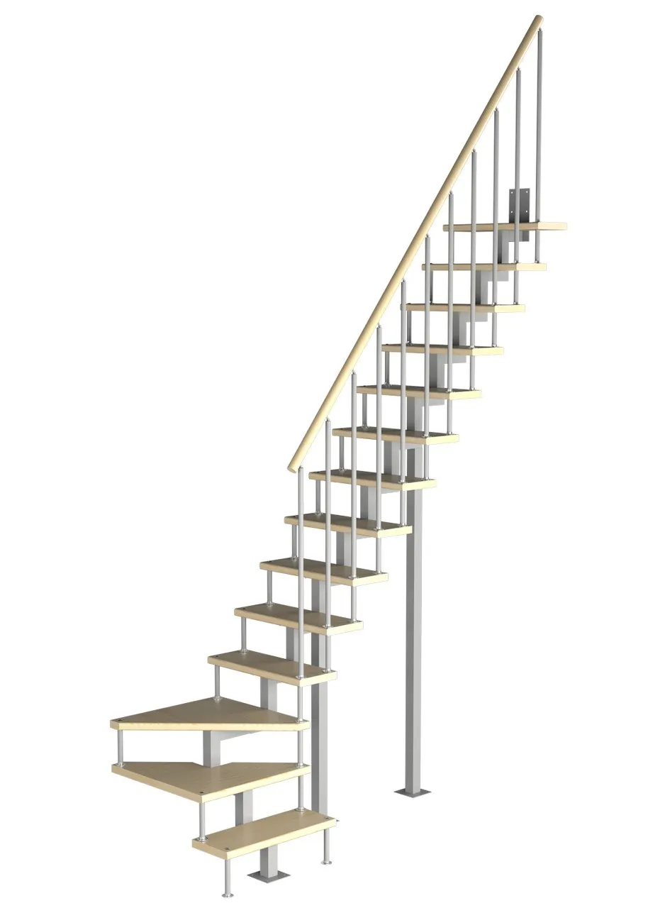 Модульная малогабаритная лестница Линия 2700-2925, Белый, Лиственница, Нержавеющая сталь