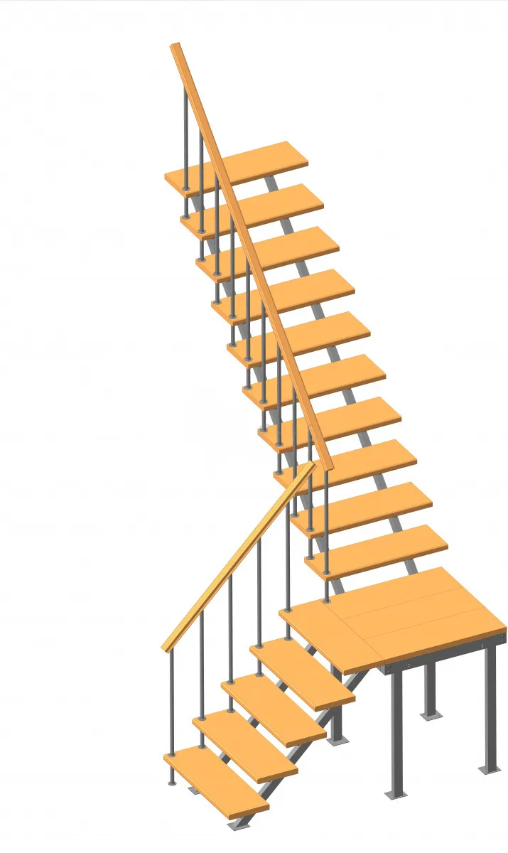 Комбинированная межэтажная лестница ЛЕС-05-3 (поворот 90°, h 3 м), Сосна