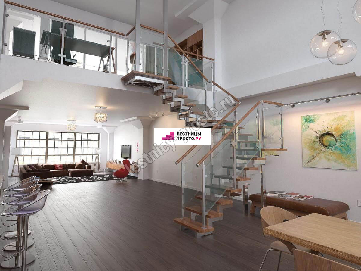 | Лестница Prosto Due 40×80 п-образная, ступени лиственница |