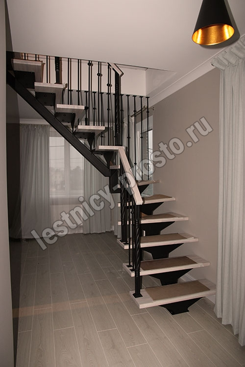 | Лестница PROSTO MONO Г-образная h225 см, ступени лиственница |
