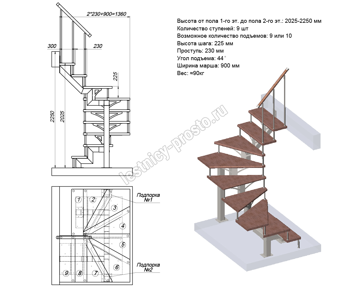Под заказ возможно изготовление каркаса лестницы PROSTO MONO с поворотом начинающимся с любой ступени, а также, возможно реализовать поворот через площадку. Звоните нам по любым возникающим вопросам, мы поможем сориентироваться и сделать правильный выбор.