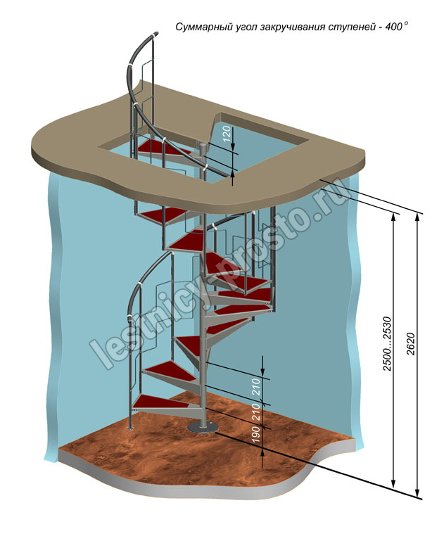 Диаметр лестницы - 125 см.