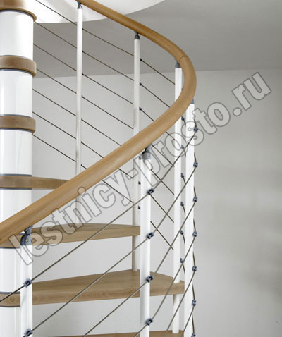 Перила состоят из окрашенных стальных балясин и кабелей из нержавеющей стали, идущих параллельно перилам. Концы черные для черной лестницы и серые для серой и белой лестниц.