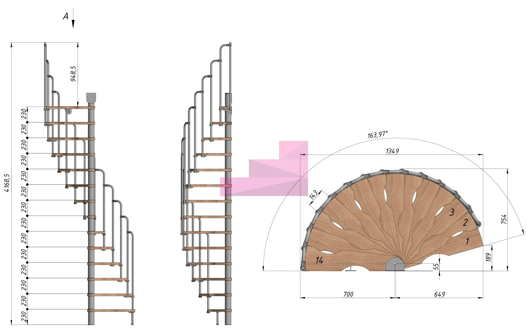 Высота лестницы 3220 - 3450 (14 ступеней) мм