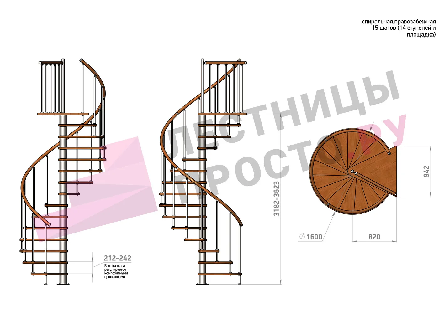 | Винтовая лестница Prosto Spiral Black D160см, h318.2-362.3 см |
