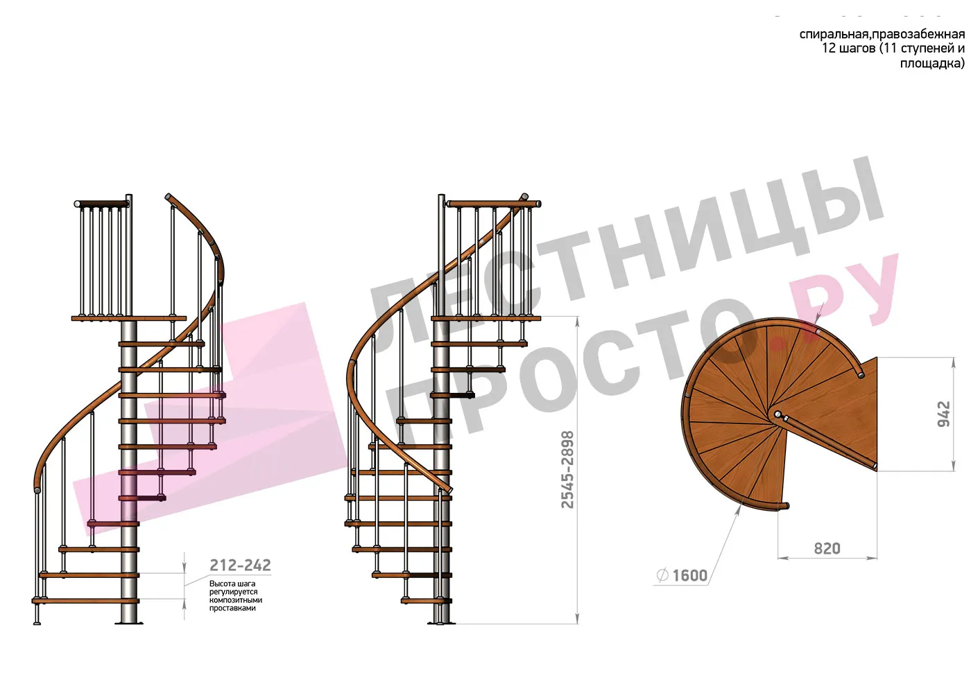 | Винтовая лестница Prosto Spiral Black D160см, h275.7-313.9 см |