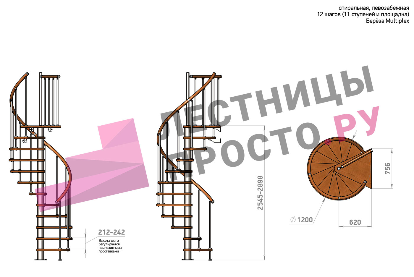 Винтовая лестница Prosto Spiral White D120см, h254.5-289.8 см