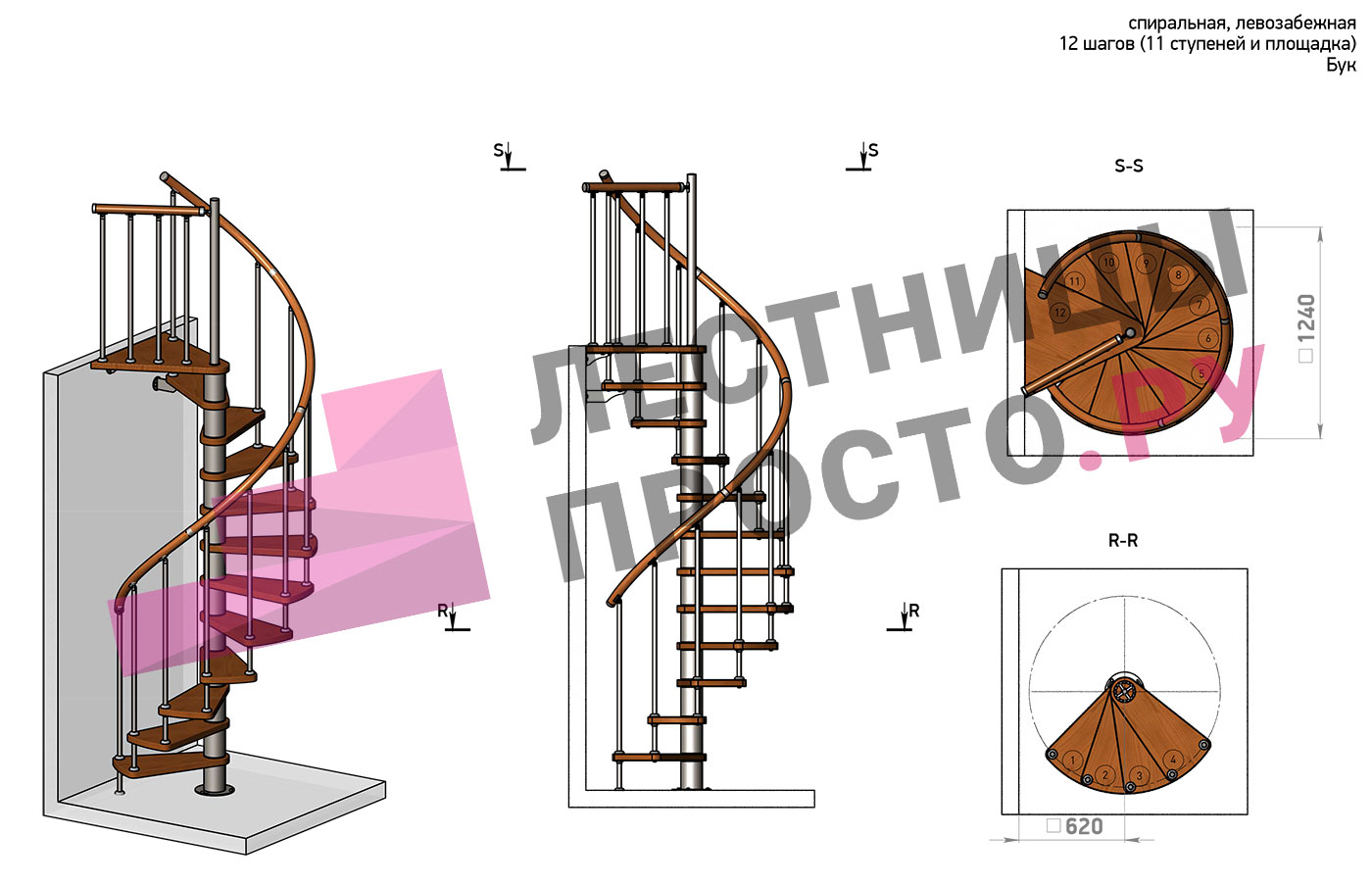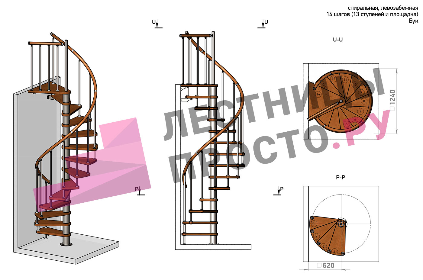Элементы каркаса, ограждение, ступени, площадка, необходимый для сбора лестницы крепёж.