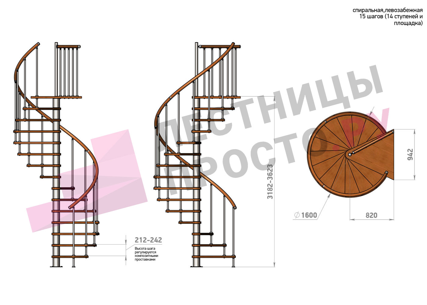 | Винтовая лестница Prosto Spiral White D160см, h318.2-362.3 см |