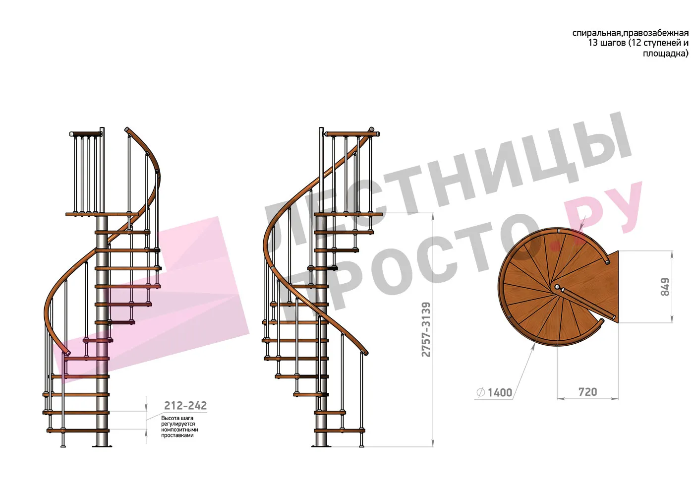 | Винтовая лестница Prosto Spiral White D140см, h254.5-289.8 см |