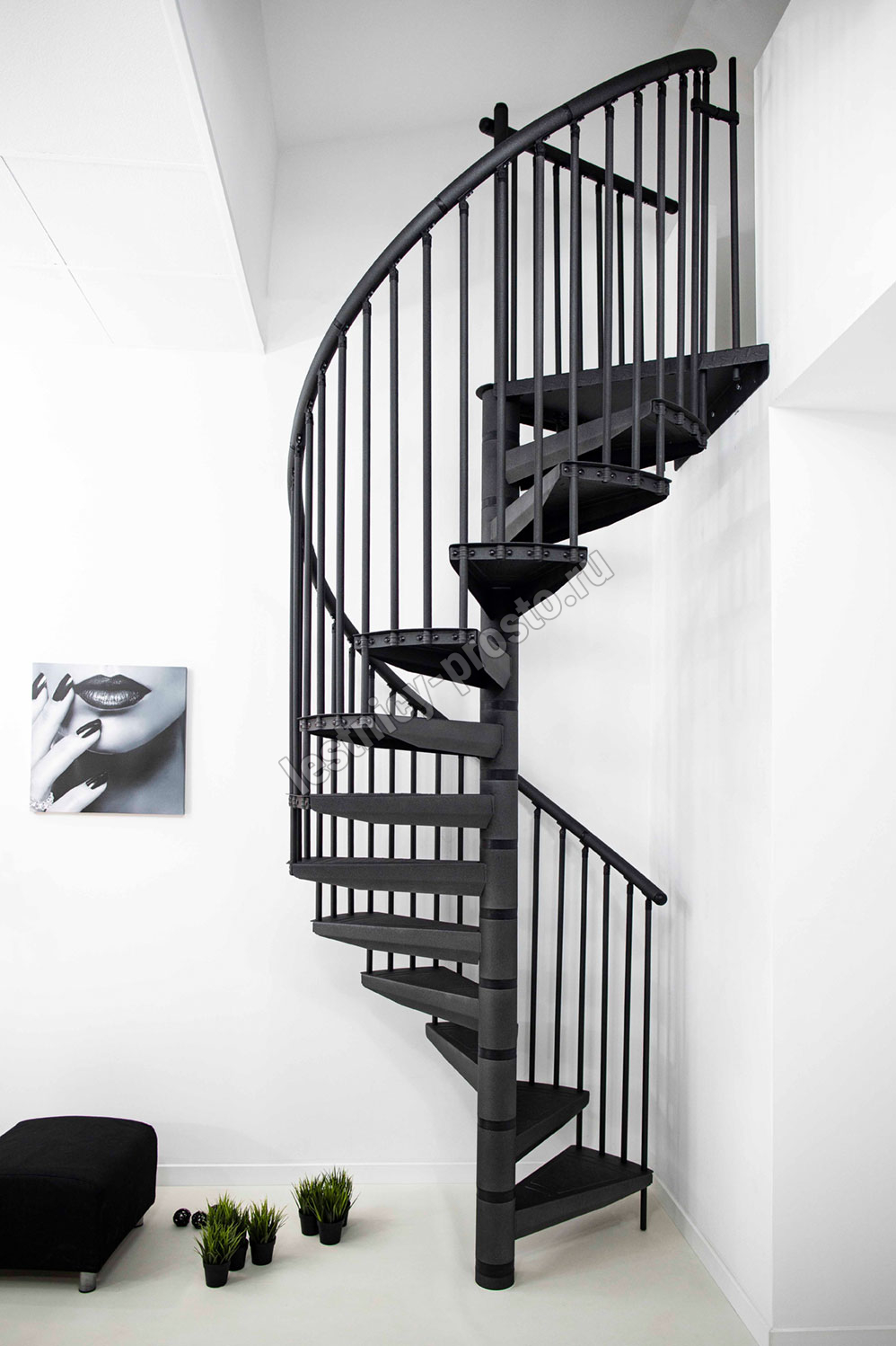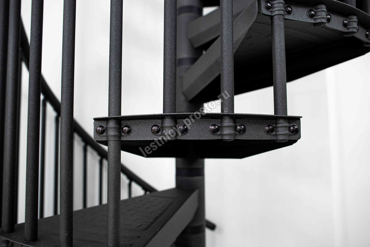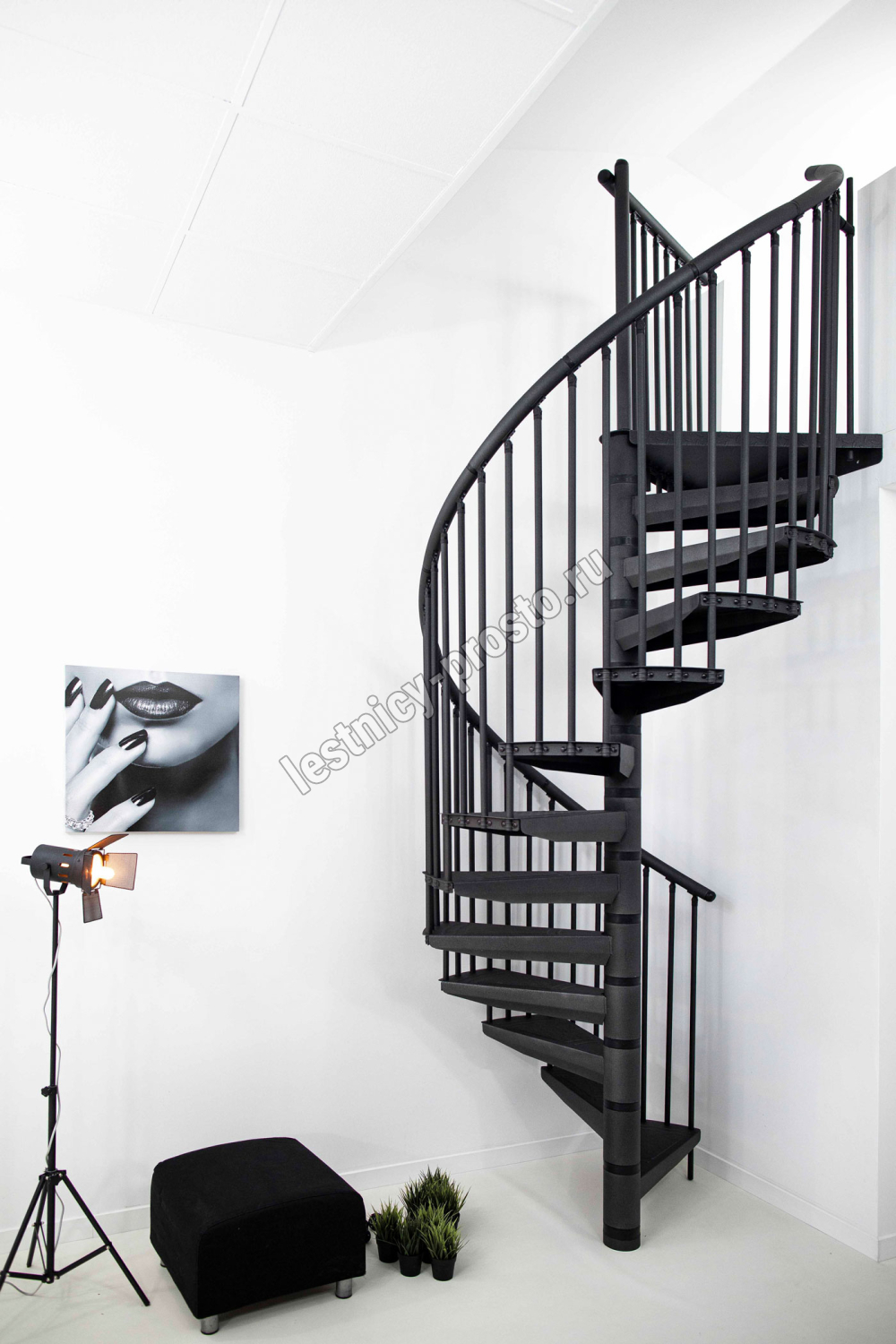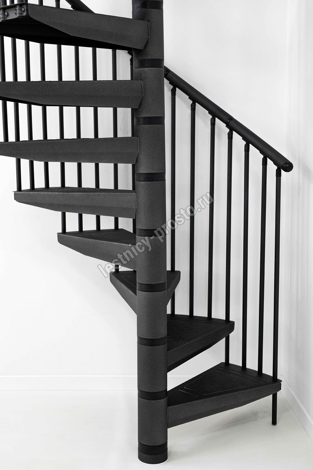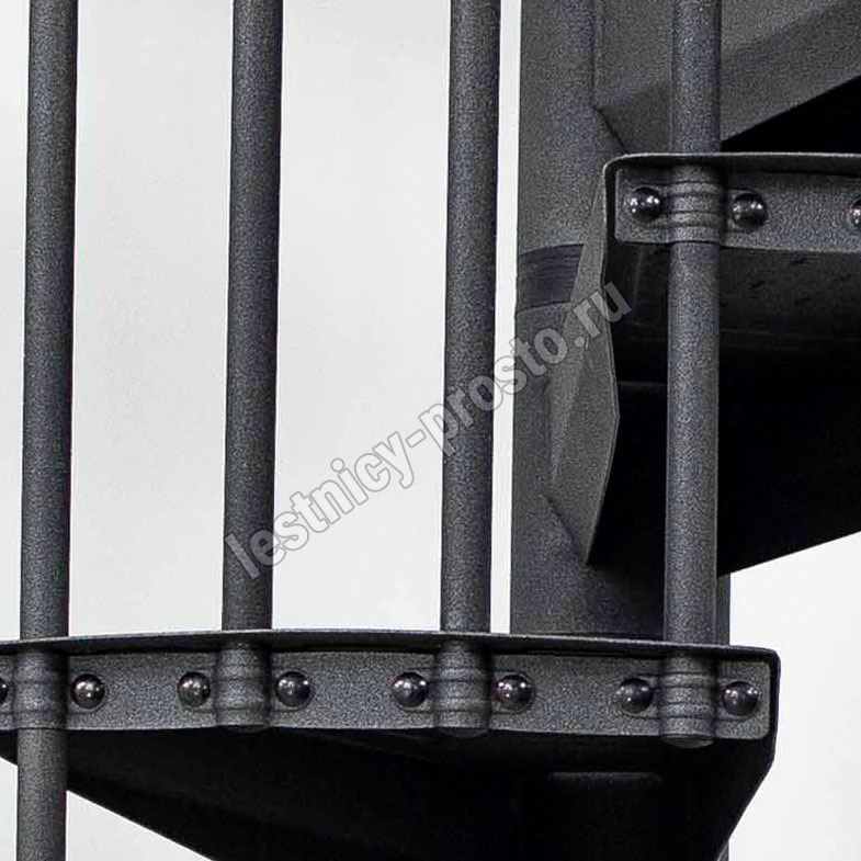 По запросу возможно конфигурирование набора до максимальной высоты 346 см. Все металлические элементы покрыты порошковой краской высочайшего качества графитового цвета, устойчивого к царапинам и механическим повреждениям. Профилированные нескользящие ступени из листового металла в клетку, снабженные небольшим подступенком для большей безопасности. Алюминиевые поручни с высококачественным порошковым покрытием. Напольные перила по запросу, прямые или круглые.