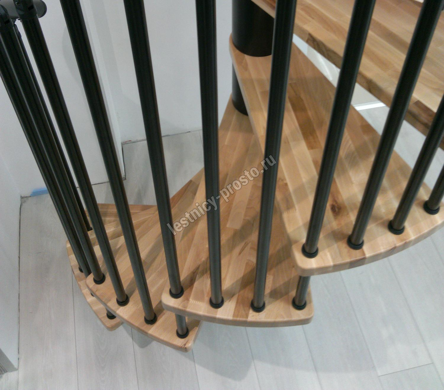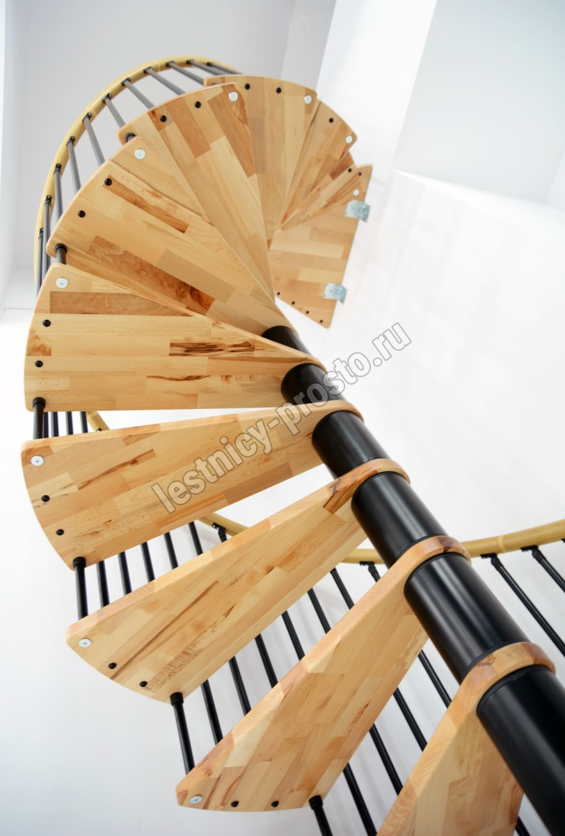 Лестница представлена в двух вариантах: с поворотом направо и с поворотом налево. Благодаря возможности регулировать высоту шага с помощью пластиковых вставок (входят в базовый комплект), высоту лестницы можно варьировать в пределах от 2860 до 3090 мм. Кроме того, купив дополнительную секцию для этой лестницы, можно поднять высоту до 3320 мм. Поручень изготовлен из массива бука в тон ступеням. Ступени и поручень покрыты износостойким защитным лаком.